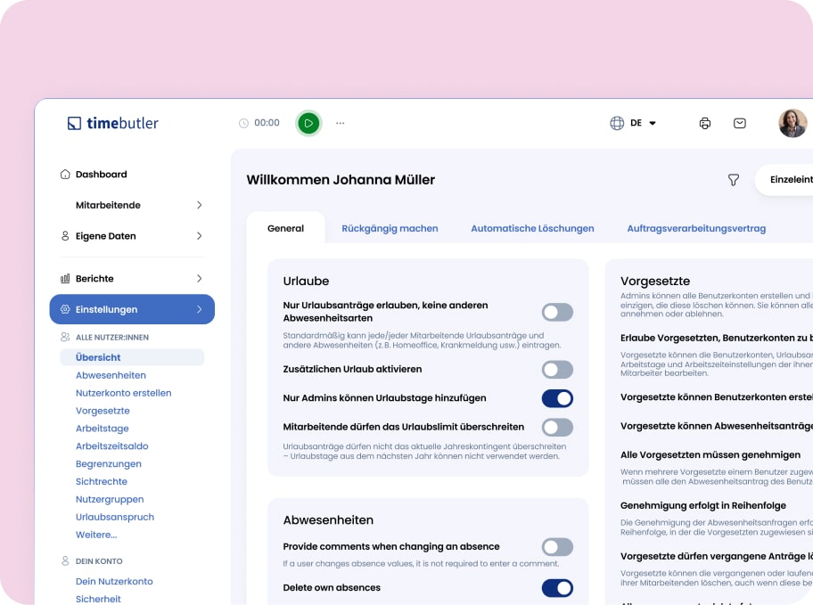 Häufig gestellte Fragen zu Timebutler's Einstellungsoptionen
