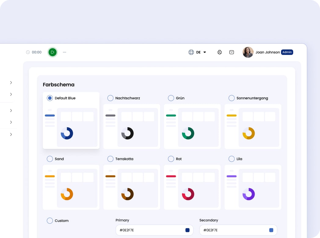 In unserem „Corporate Design“ Bereich kannst du dein Logo und deine Farben ganz einfach in das Zeiterfassungs-Tool integrieren. So wird aus einer normalen Abwesenheitsmanagement-Software ein System, das perfekt zu deiner Marke passt.