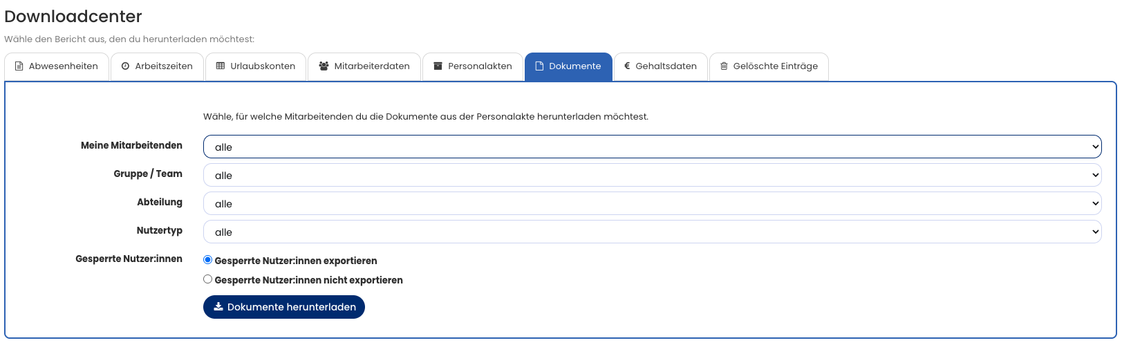 Über das Downloadcenter kannst du die Dokumente, die du in den Personalakten gespeichert hast, bequem herunterladen – auch für mehrere Nutzer gleichzeitig.