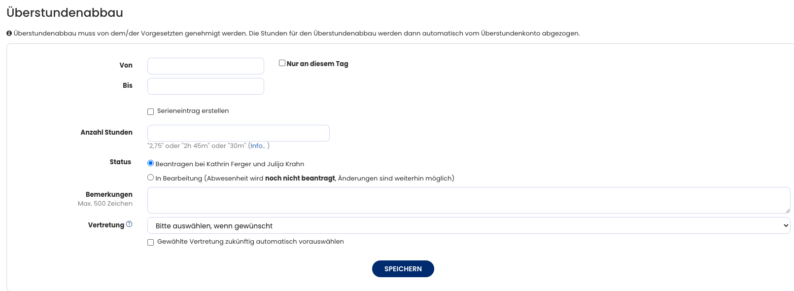 Genehmigung von Überstundenabbau