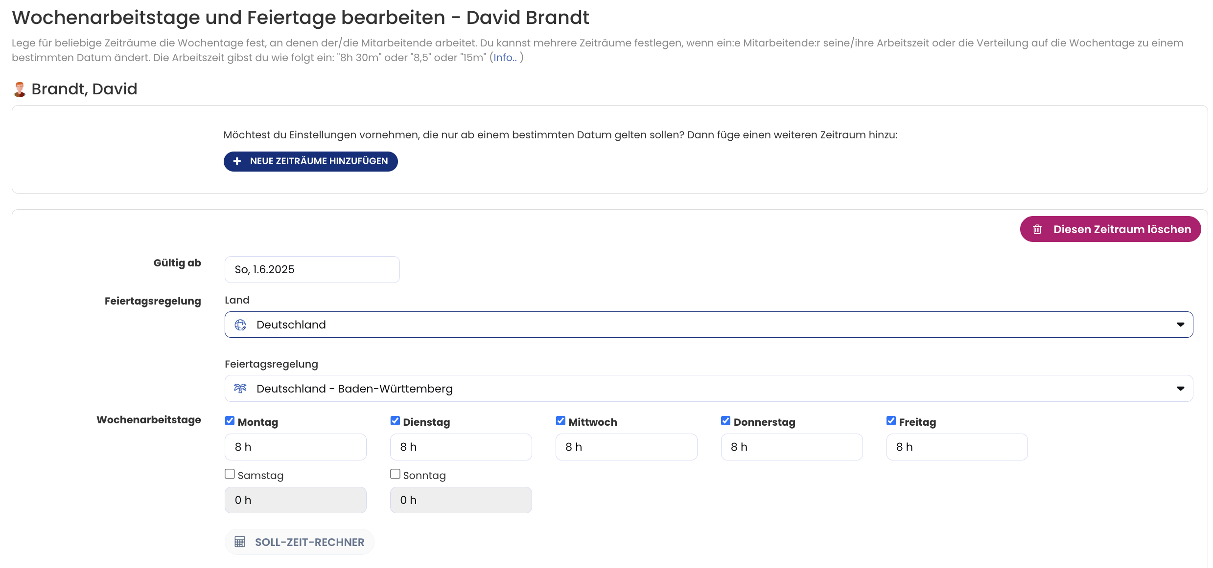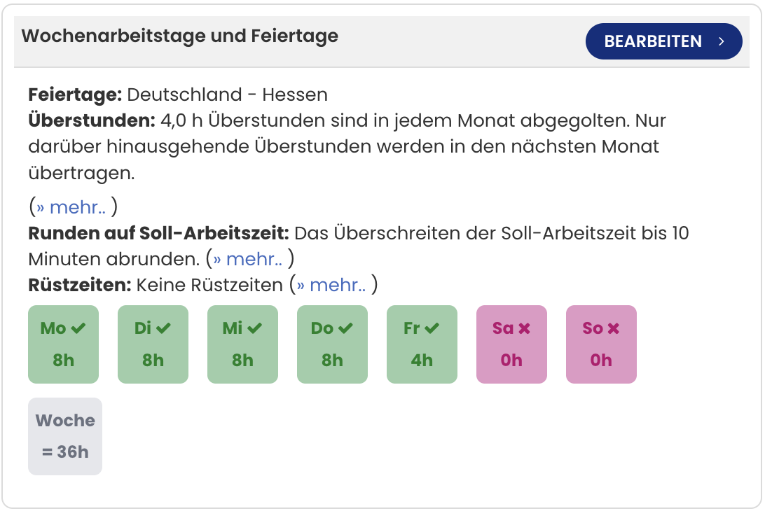 - Wochenarbeitstage, an denen die mitarbeitende Person arbeitet