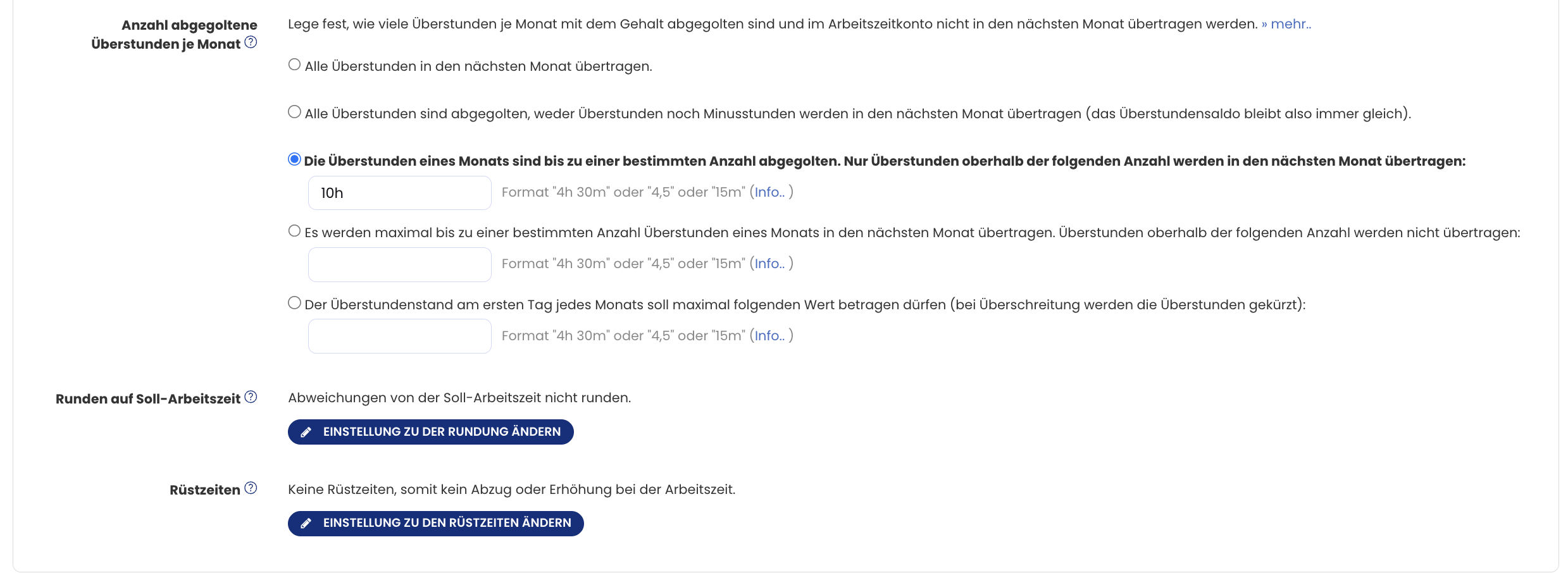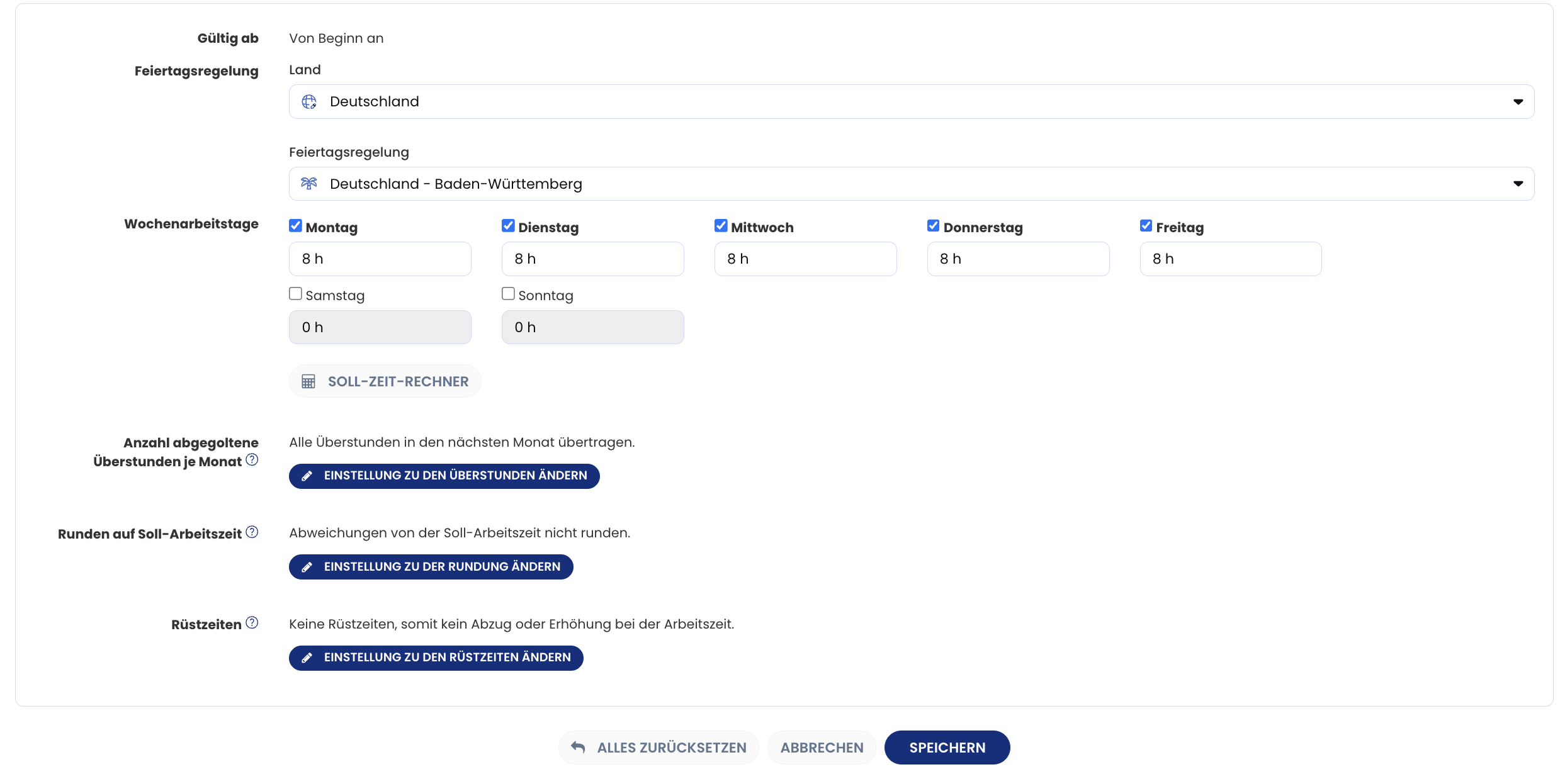 Im Arbeitszeitmodell findest du diese Einstellungen: