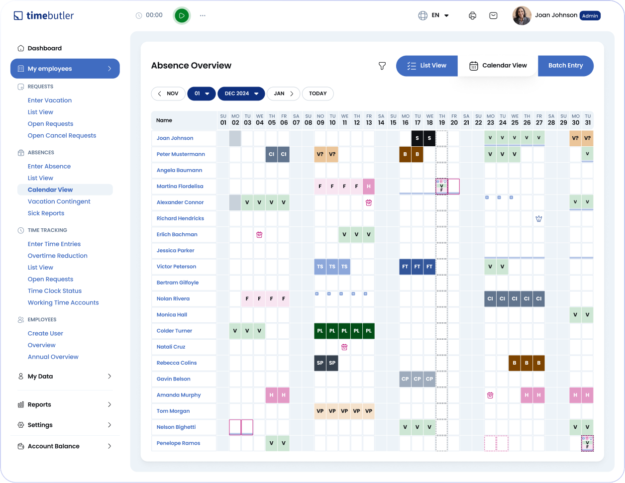 Yes, that’s right – besides tracking time and managing overtime, Timebutler makes it easy to handle all kinds of absences, like vacation, business trips, or sick leave. Everything is customizable and clearly organized, so there’s no need for manual spreadsheets. You can find more details here.